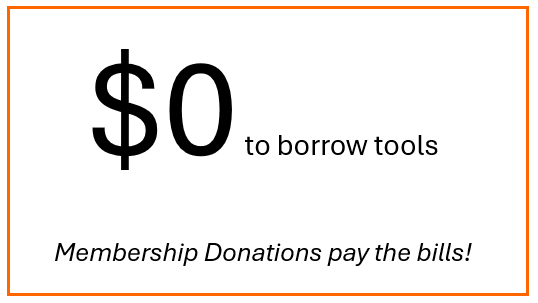 We use membership donations and late fee donations to run this all-volunteer project and to buy and maintain our tools for the community to share.